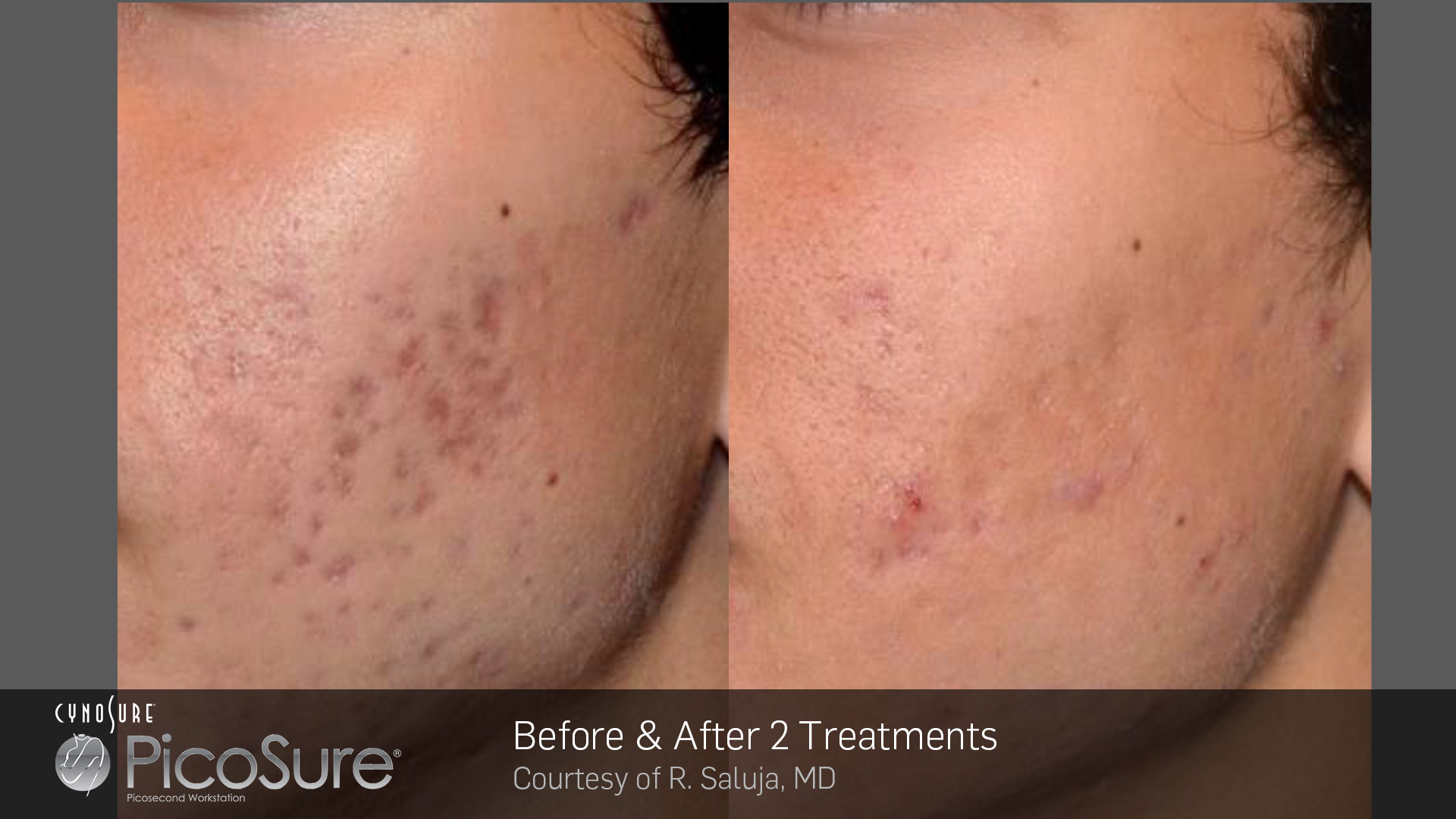 皮秒雷射755波长对于黑色素沉淀吸收的专一性极高,是现时雷射之冠。此高黑色素清除率大幅降低所需治疗次数,做一次便有显著效果;另一方面,其击破黑色素速度比传统纳秒雷射快7倍之多。因此传统激光需做10次才可去除的胎记,皮秒雷射只需2-3次便可彻底去除。